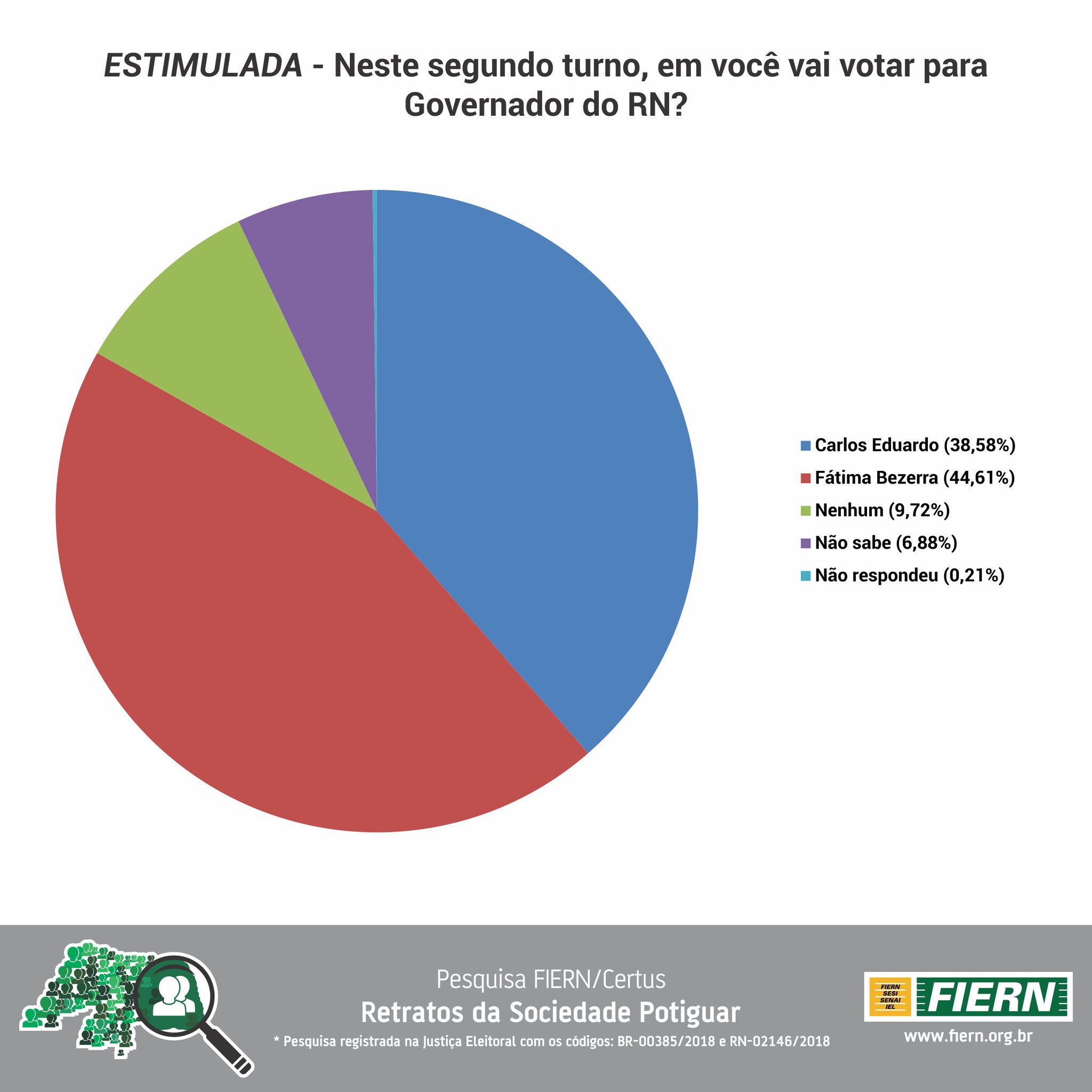 A pesquisa foi realizada pelo instituto CERTUS e foi registrada na Justiça Eleitoral sob os números BR – 00385/2018 e RN – 02146/2018. Ela foi realizada de 10 a 13 de outubro, com 1410 entrevistas, 7 regiões do RN, margem de erro 3%